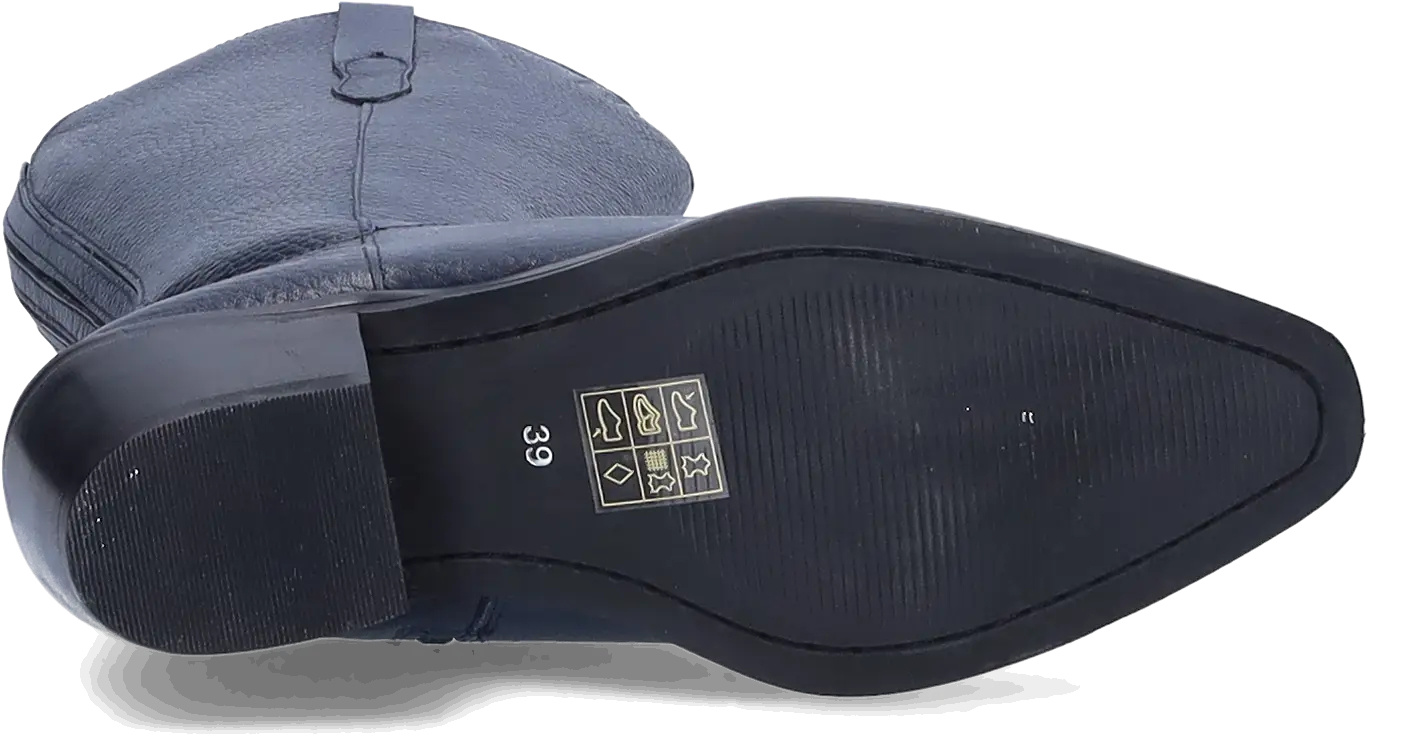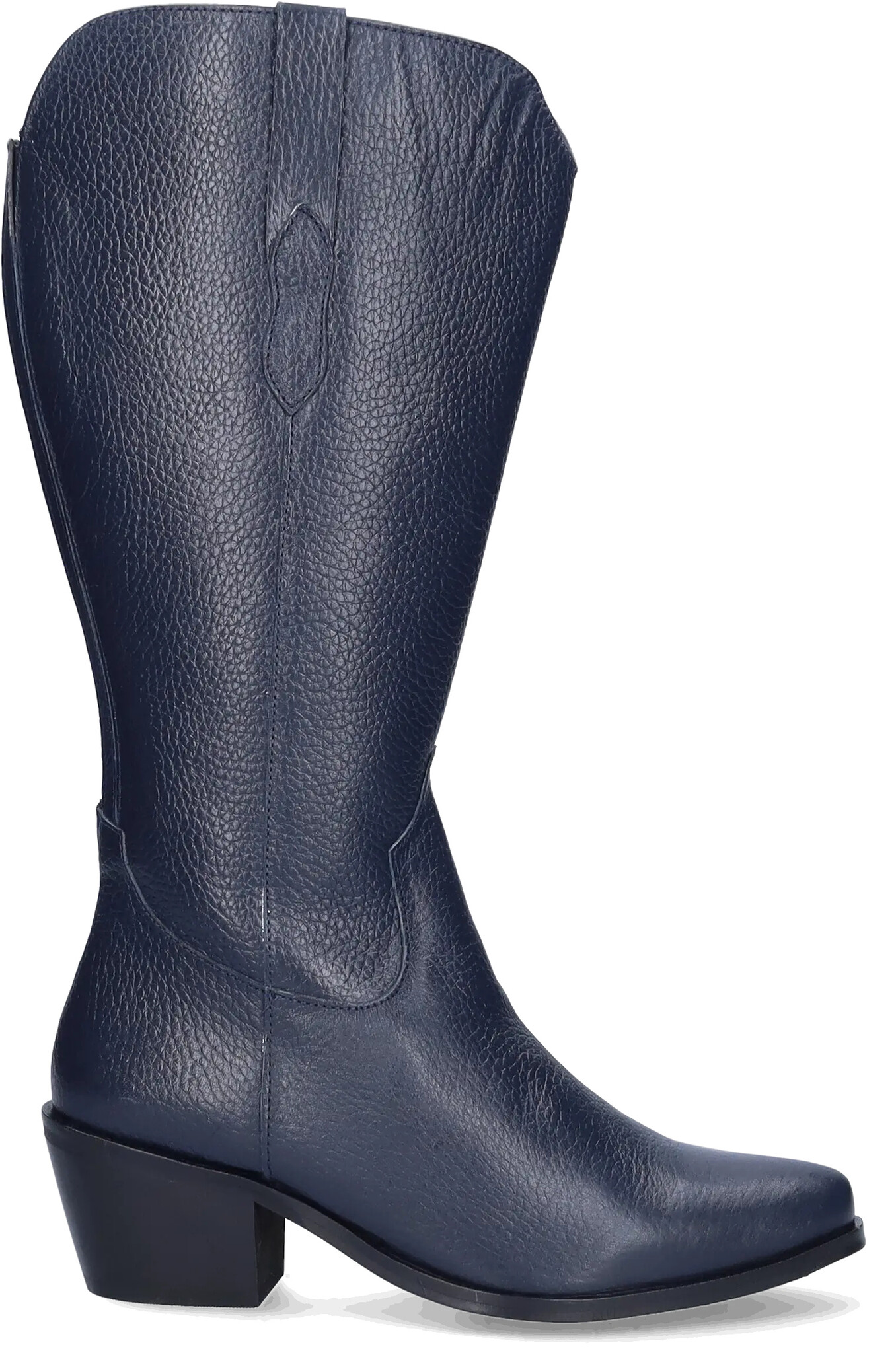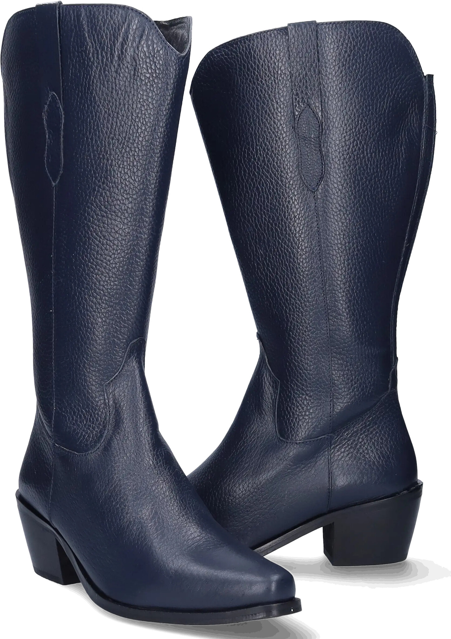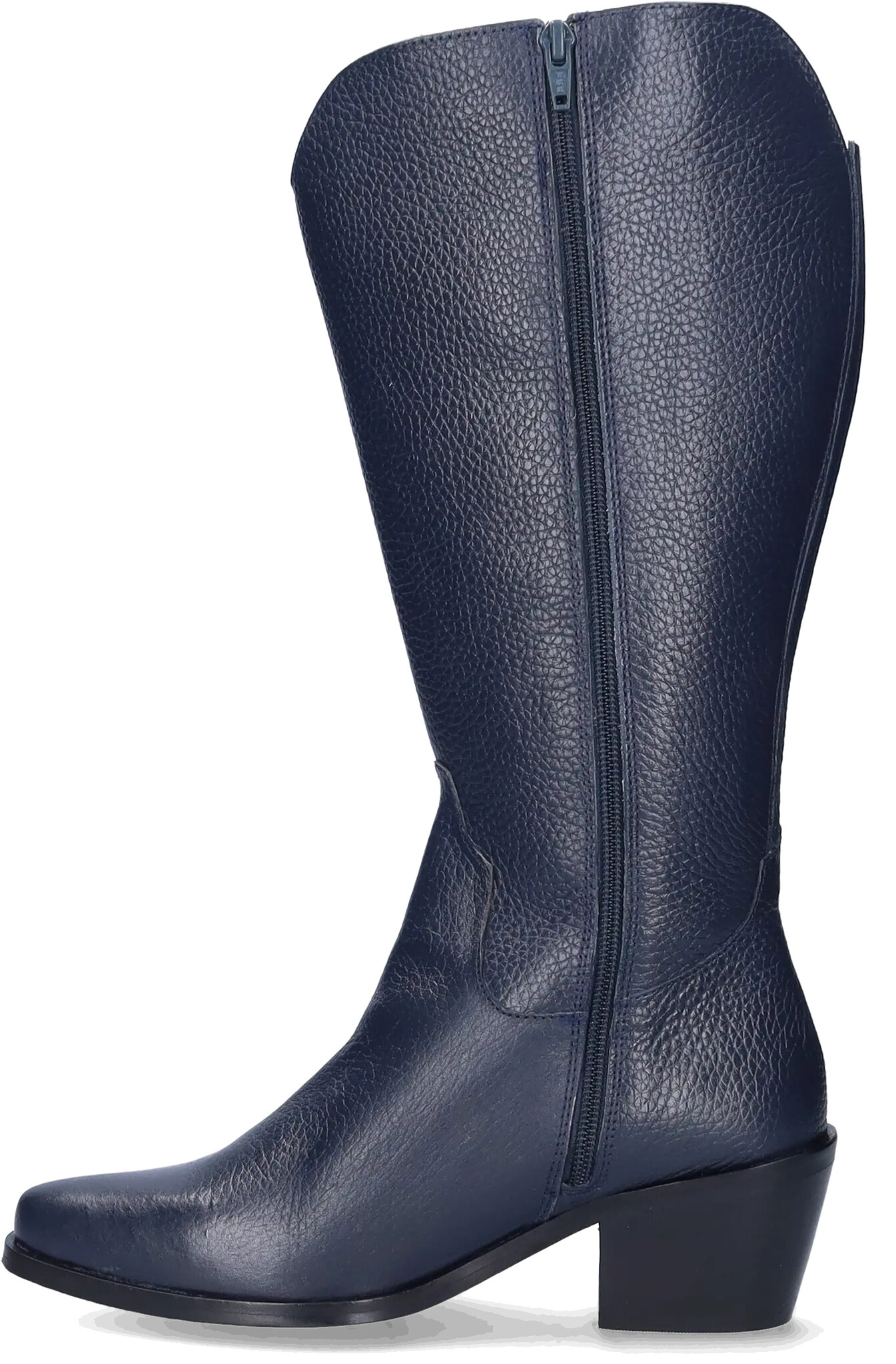 Camberley is a beautifully crafted extra wide calf cowboy boot in rich blue leather, blending classic Western styling with everyday comfort.