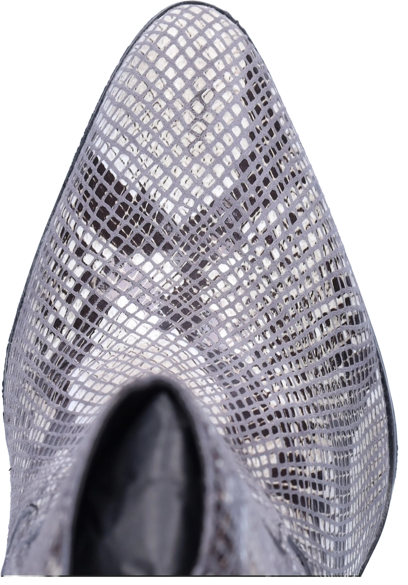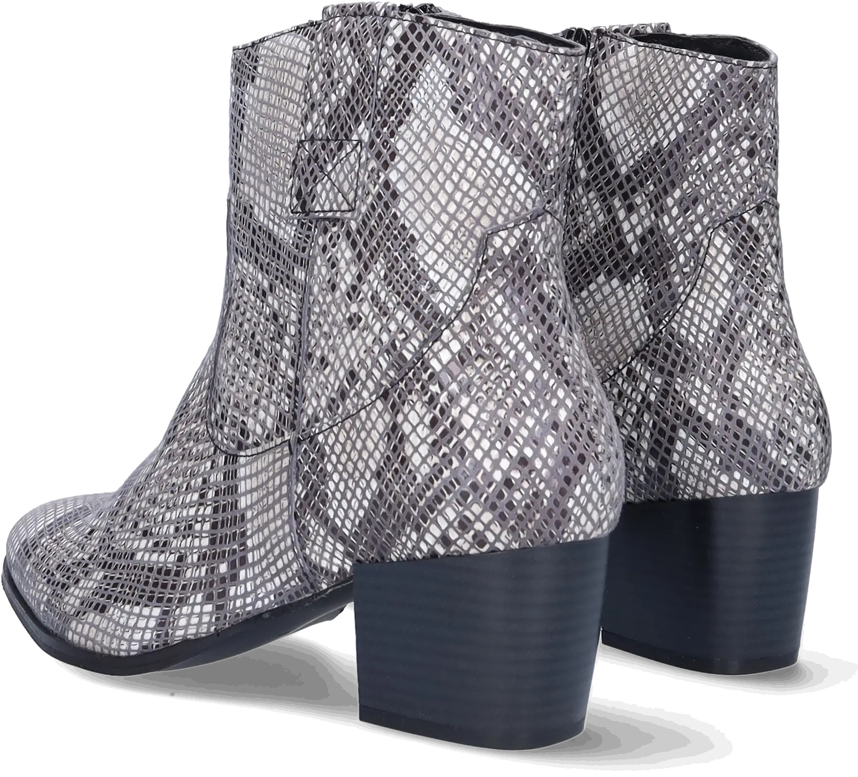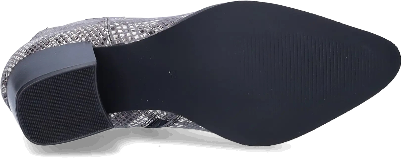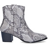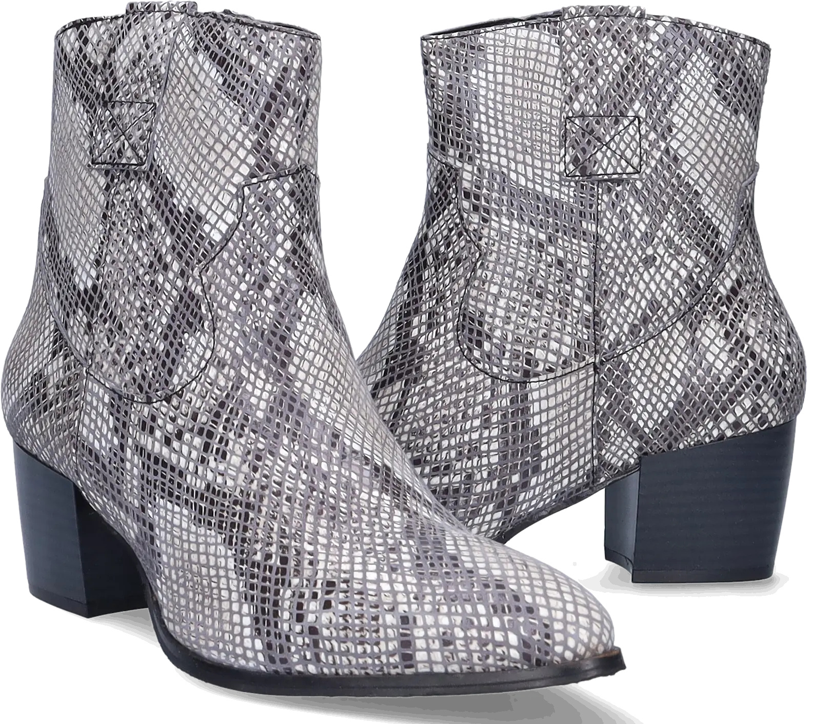 Epirus is a striking black and white wide width ankle boot crafted from faux snakeskin and leather. Designed for comfort, it features a wide width, a convenient side zipper, a generous fit around the ankle, and a spacious footbed. This boot boasts a chic pointed toe and a stylish Cuban heel.