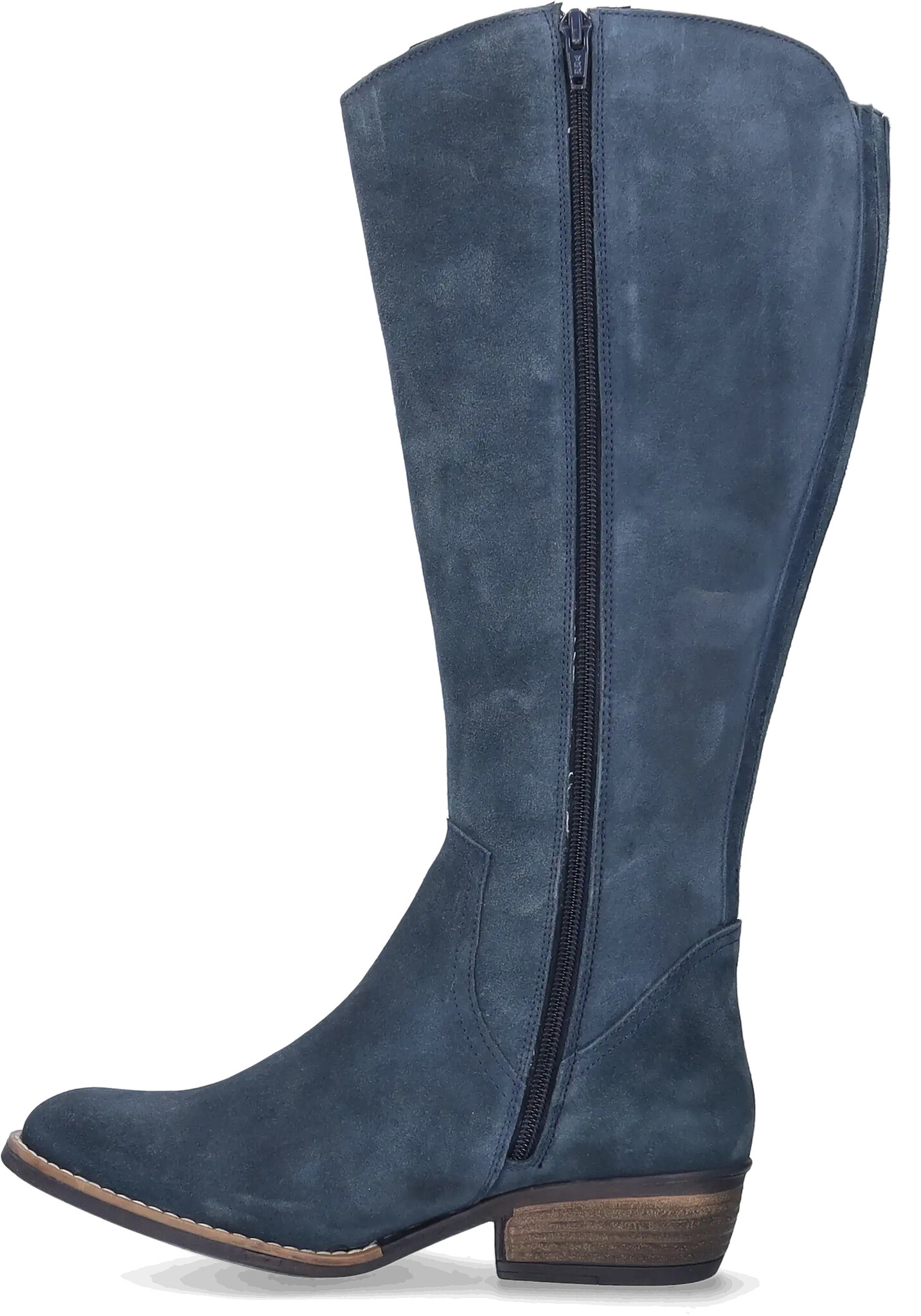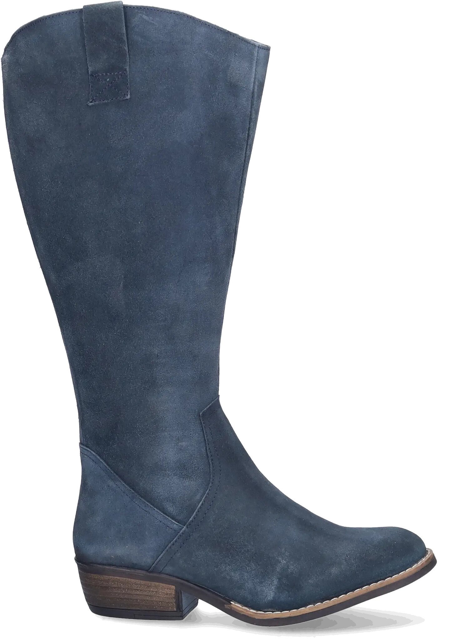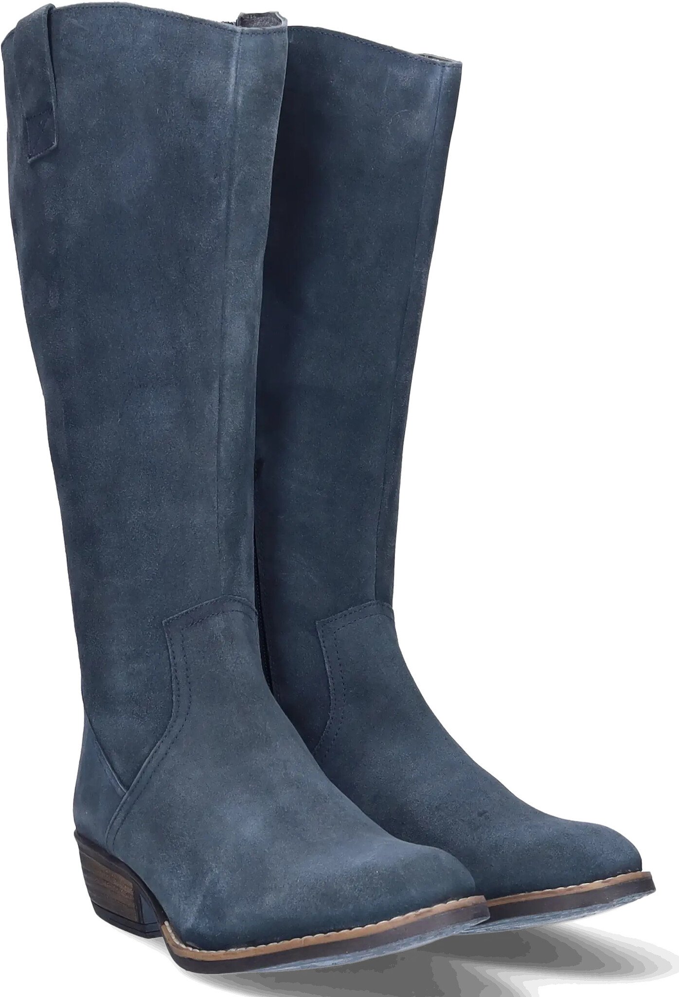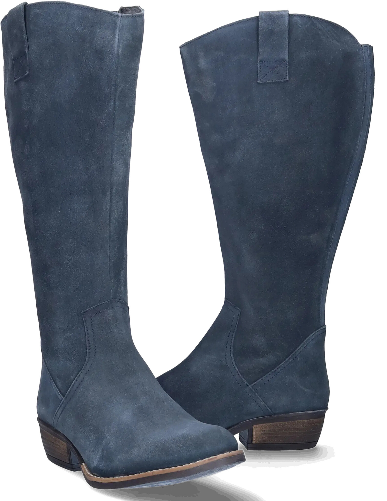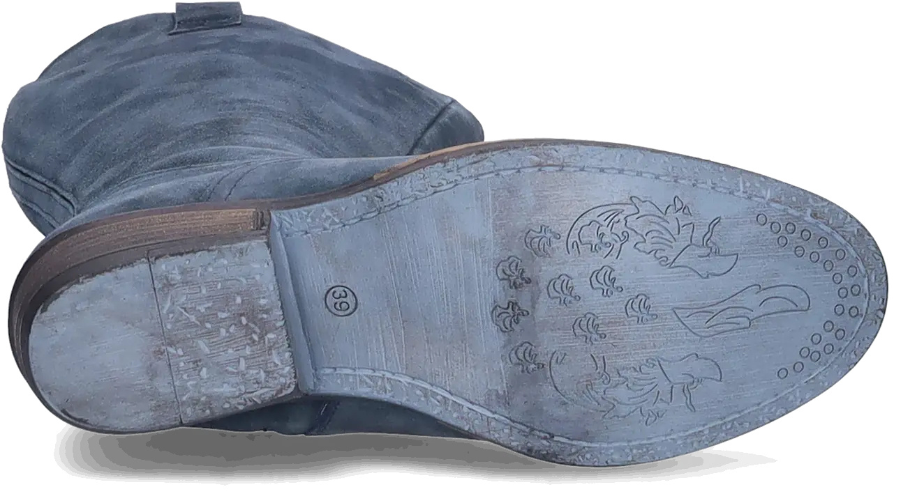 Ferryhill is a beautifully crafted wide calf cowboy boot in soft blue suede, blending Western charm with modern comfort. Featuring a pointed toe, Cuban heel, and side zipper, this wide-calf design offers a flattering silhouette with effortless wearability.