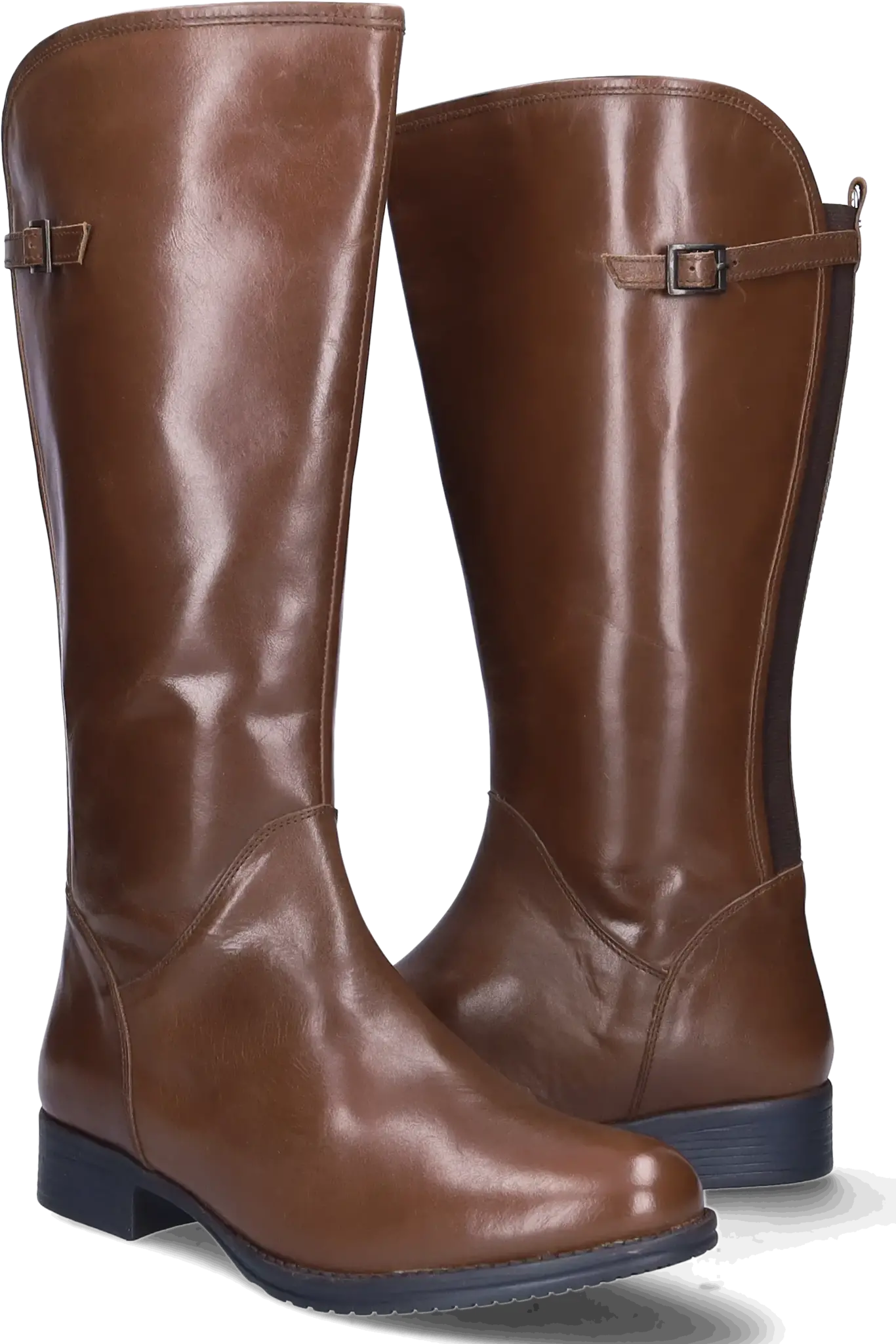 Crafted for wide calves, this beautiful boot features a striking buckle detail and elastic inserts for a more comfortable fit.