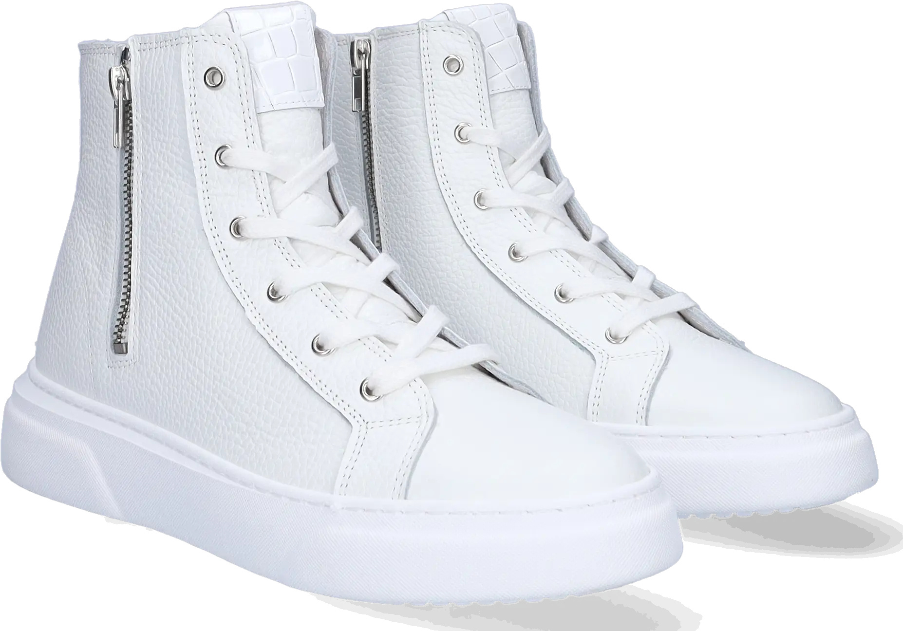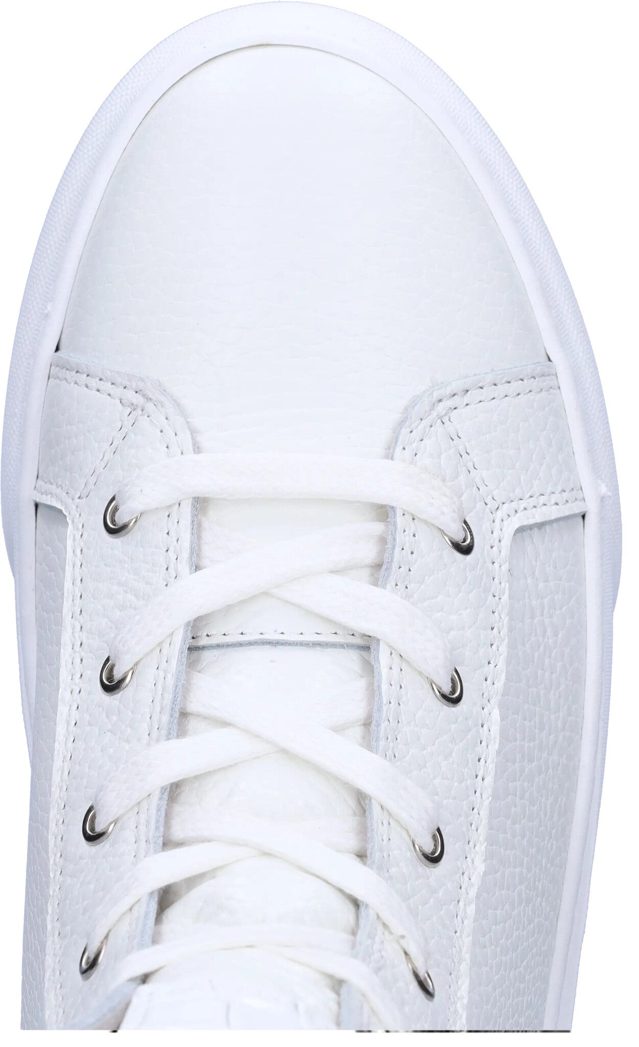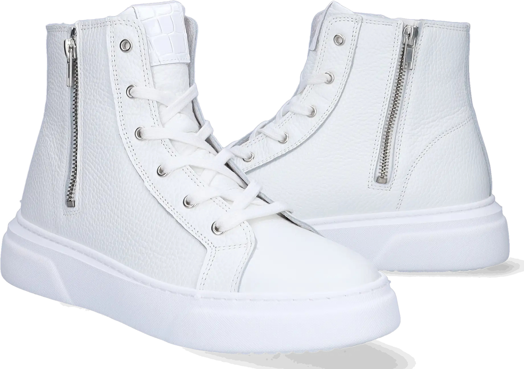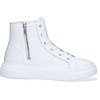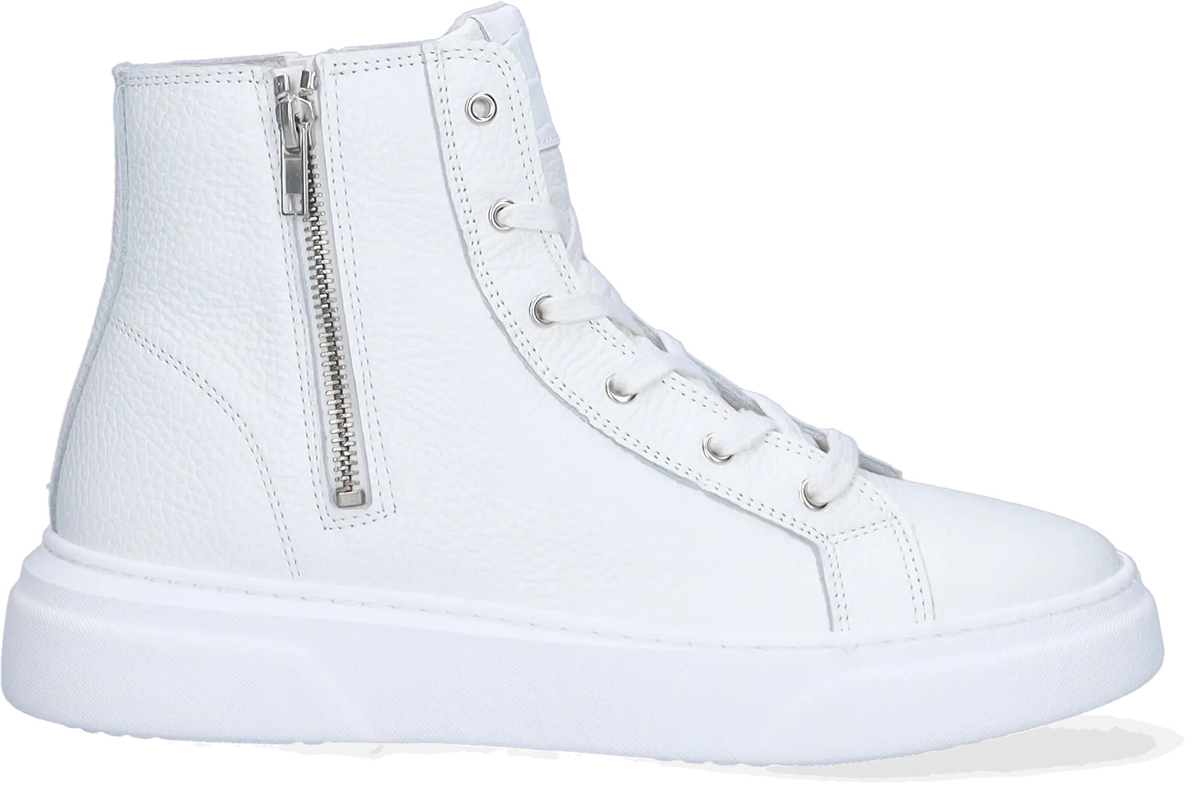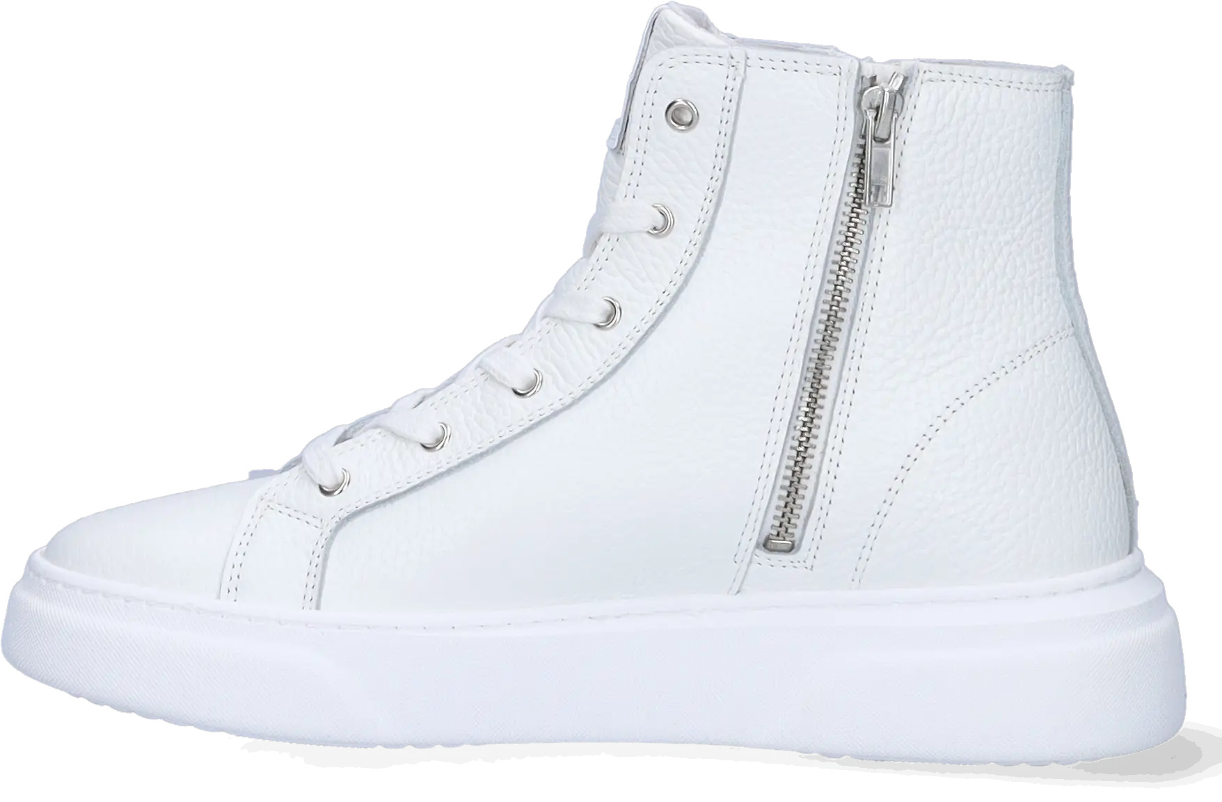 La Paz is a white, leather narrow width sneaker for women with narrow feet. It features a high instep, side zipper, and lace closure. This model is suitable for orthotic inserts.