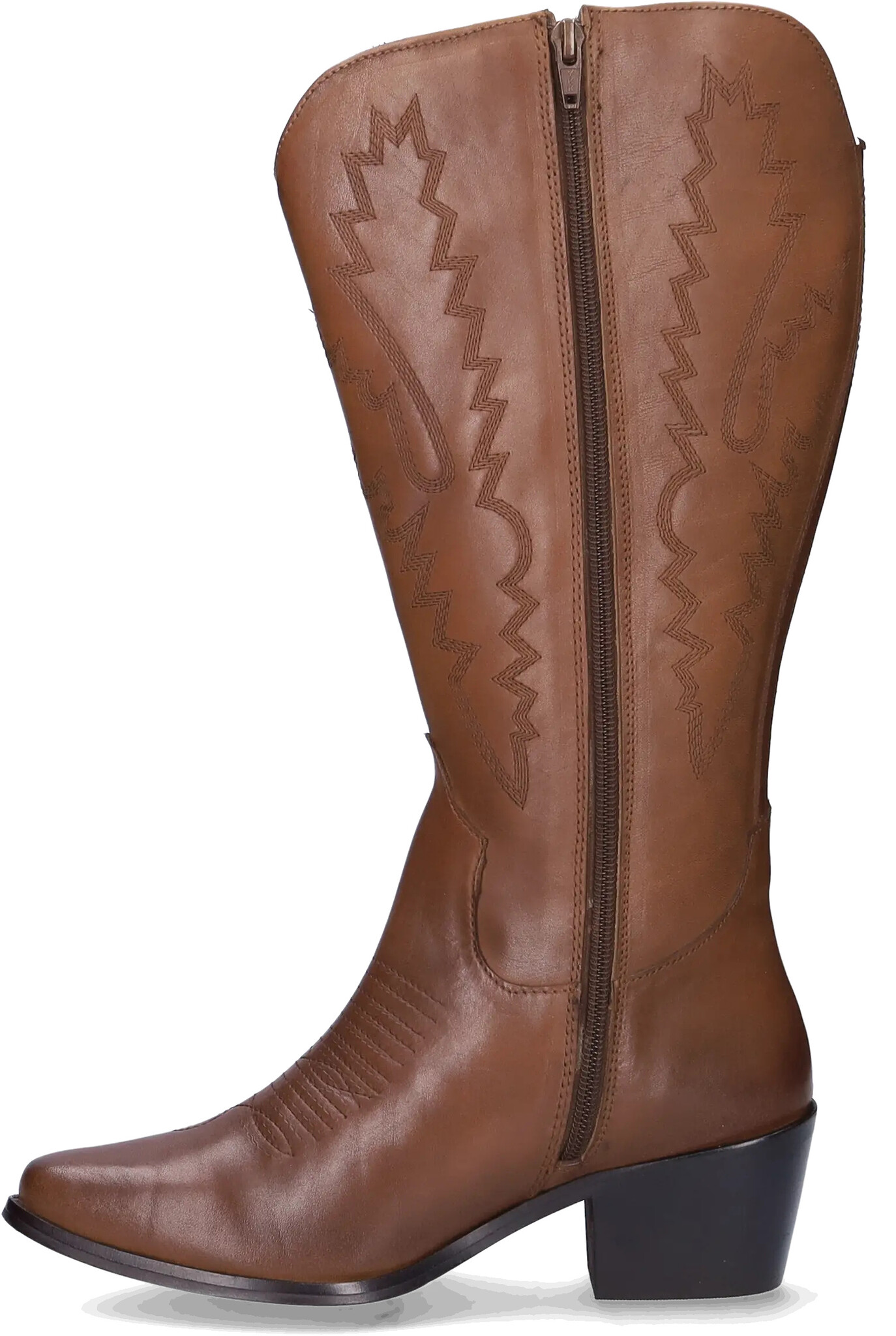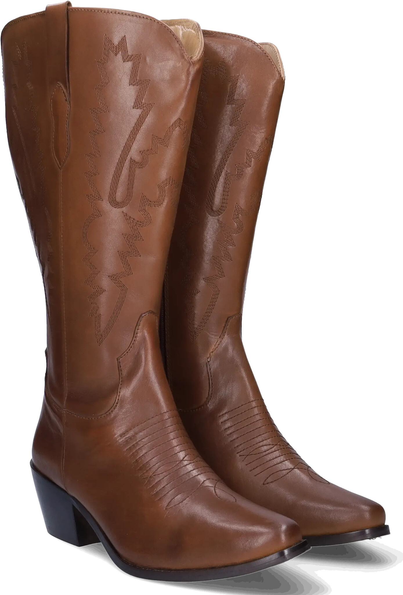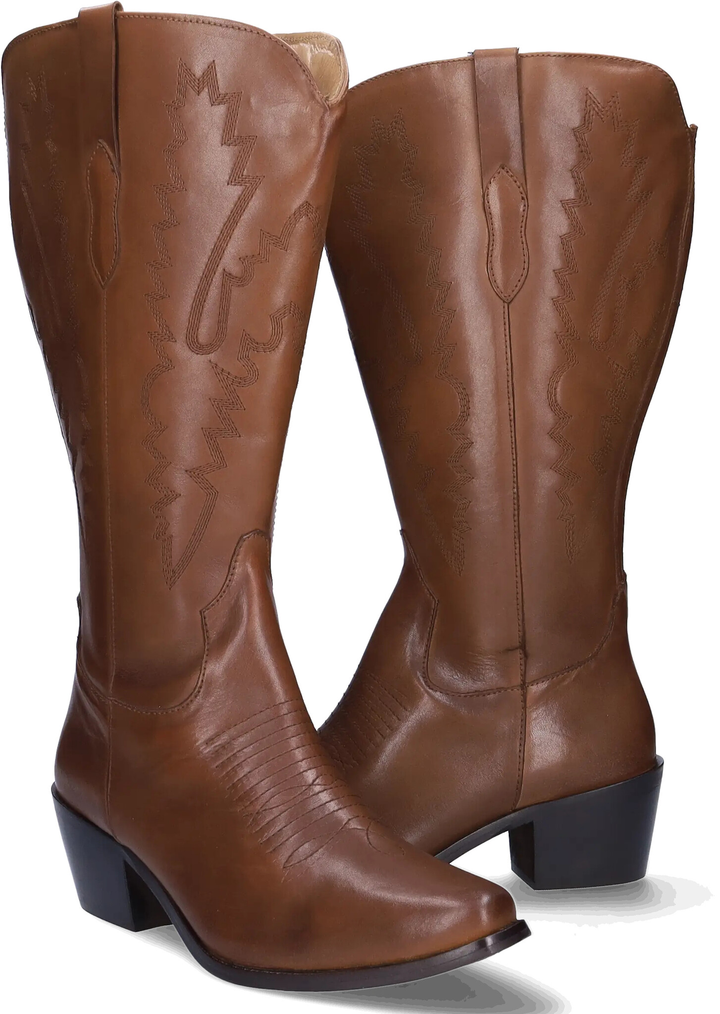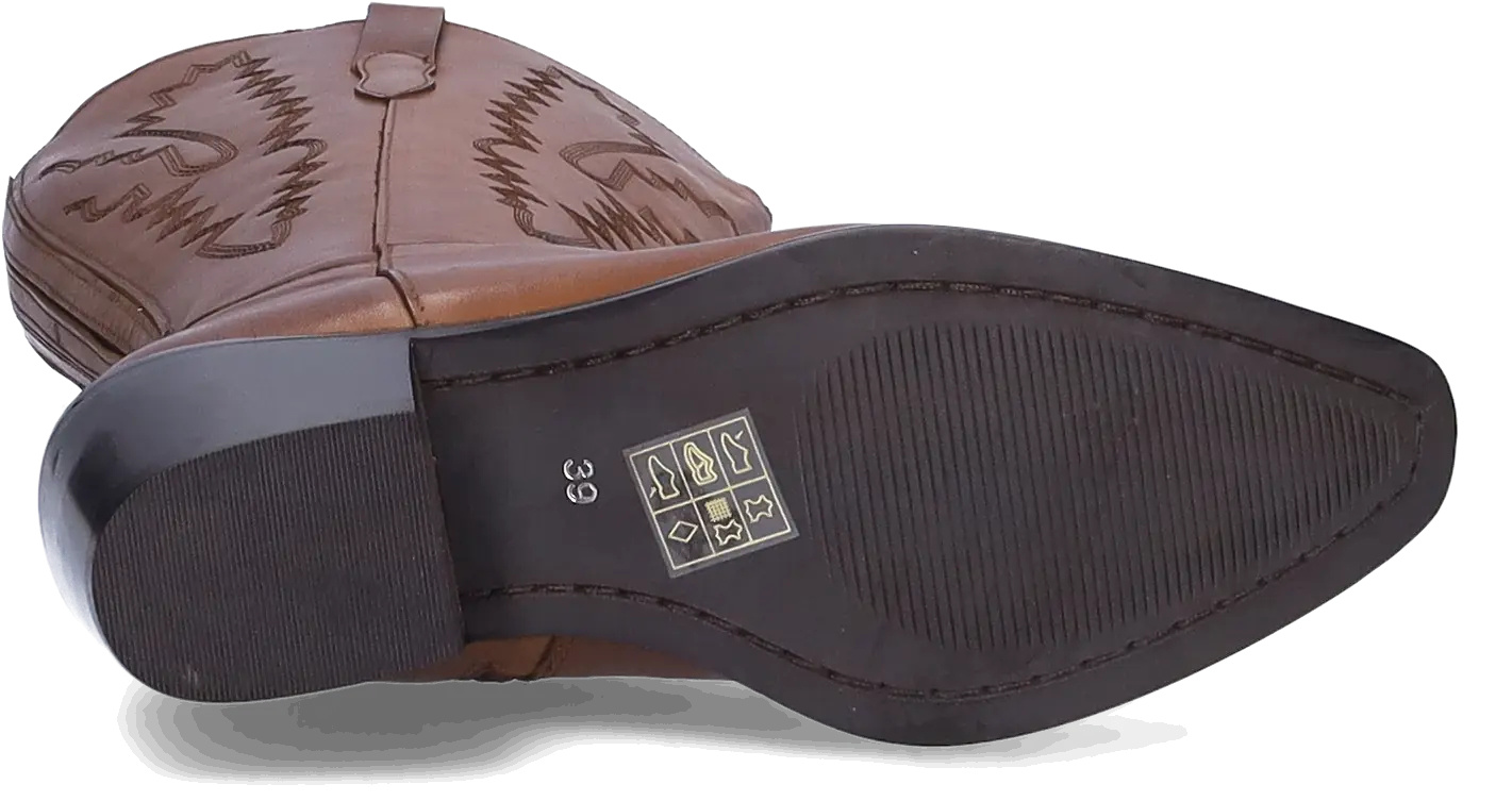 Plymouth is a rich cognac leather wide calf cowboy boot that blends classic Western style with modern comfort.