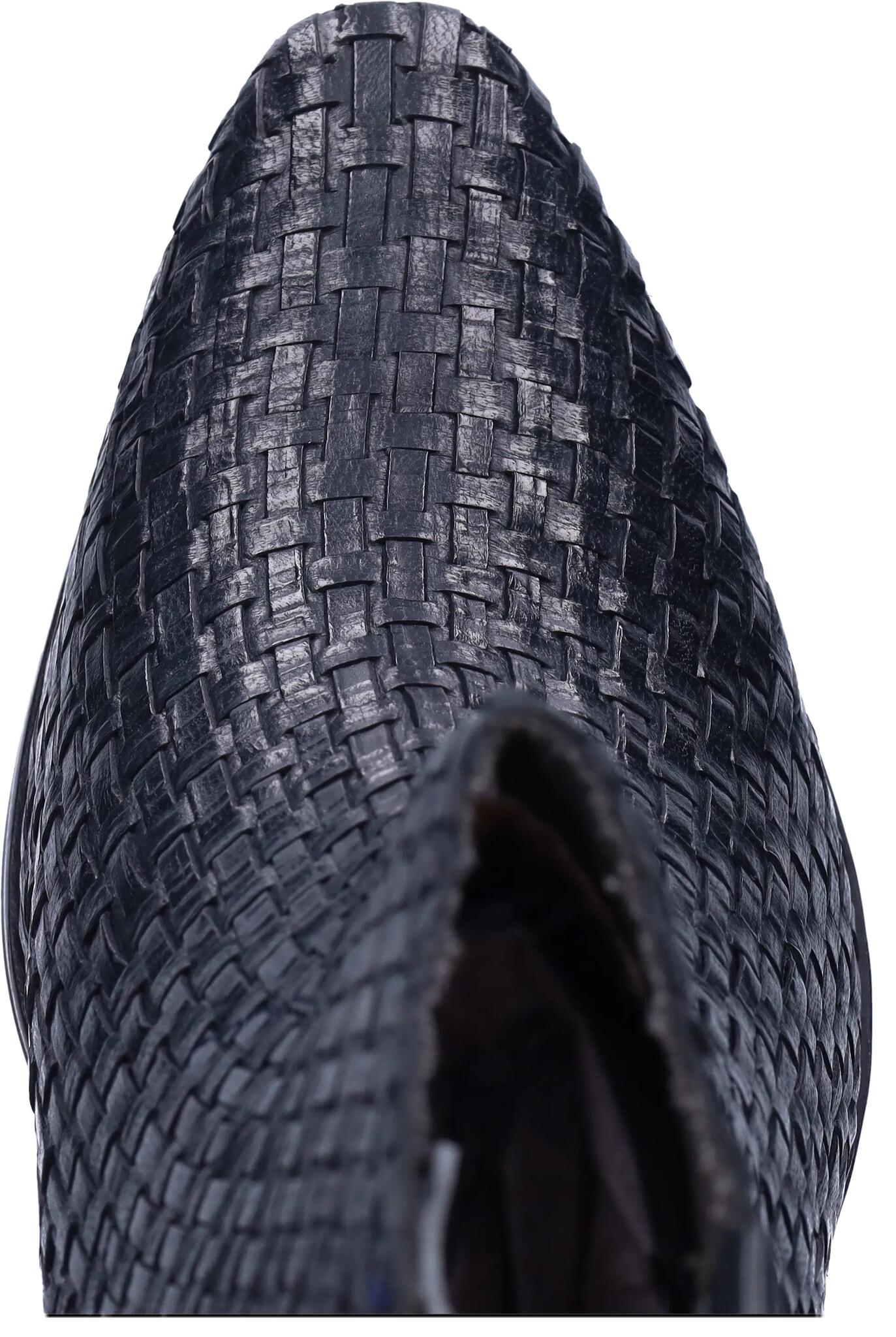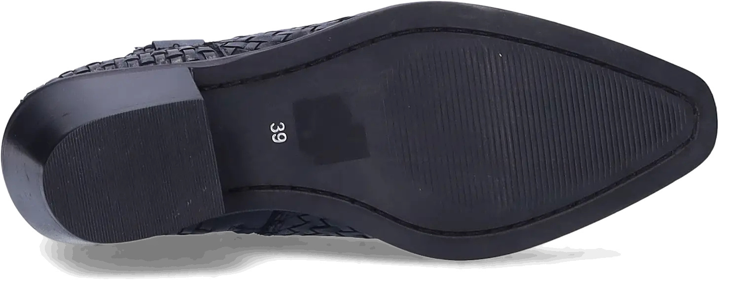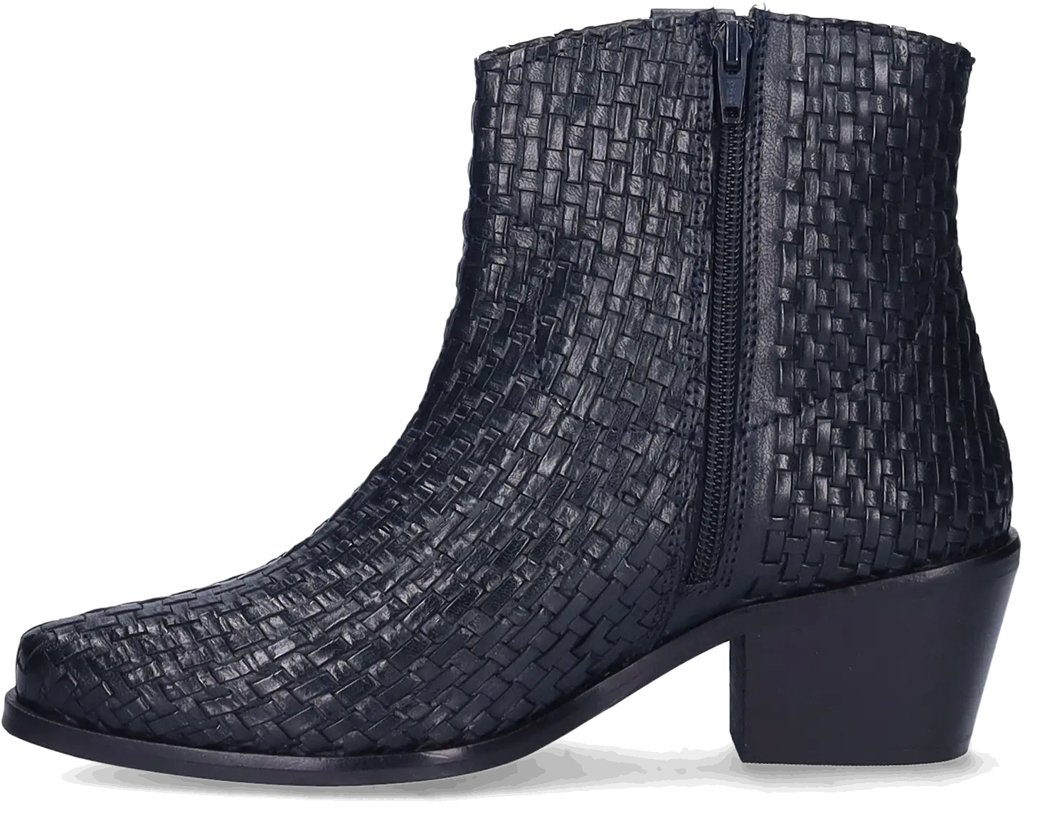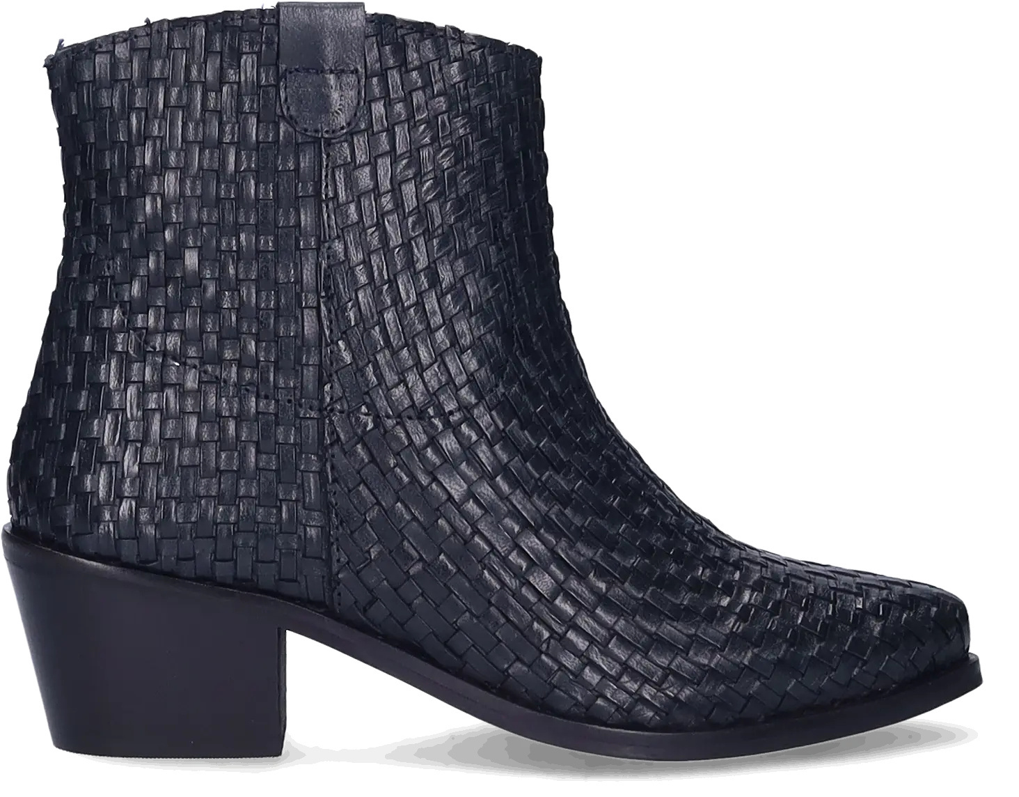 Ringwood is a blue, woven leather, wide width ankle boot.It features a side zipper, a high instep, and a generous footbed.The Ringwood boasts classic Western styling with a pointed toe and a Cuban heel.