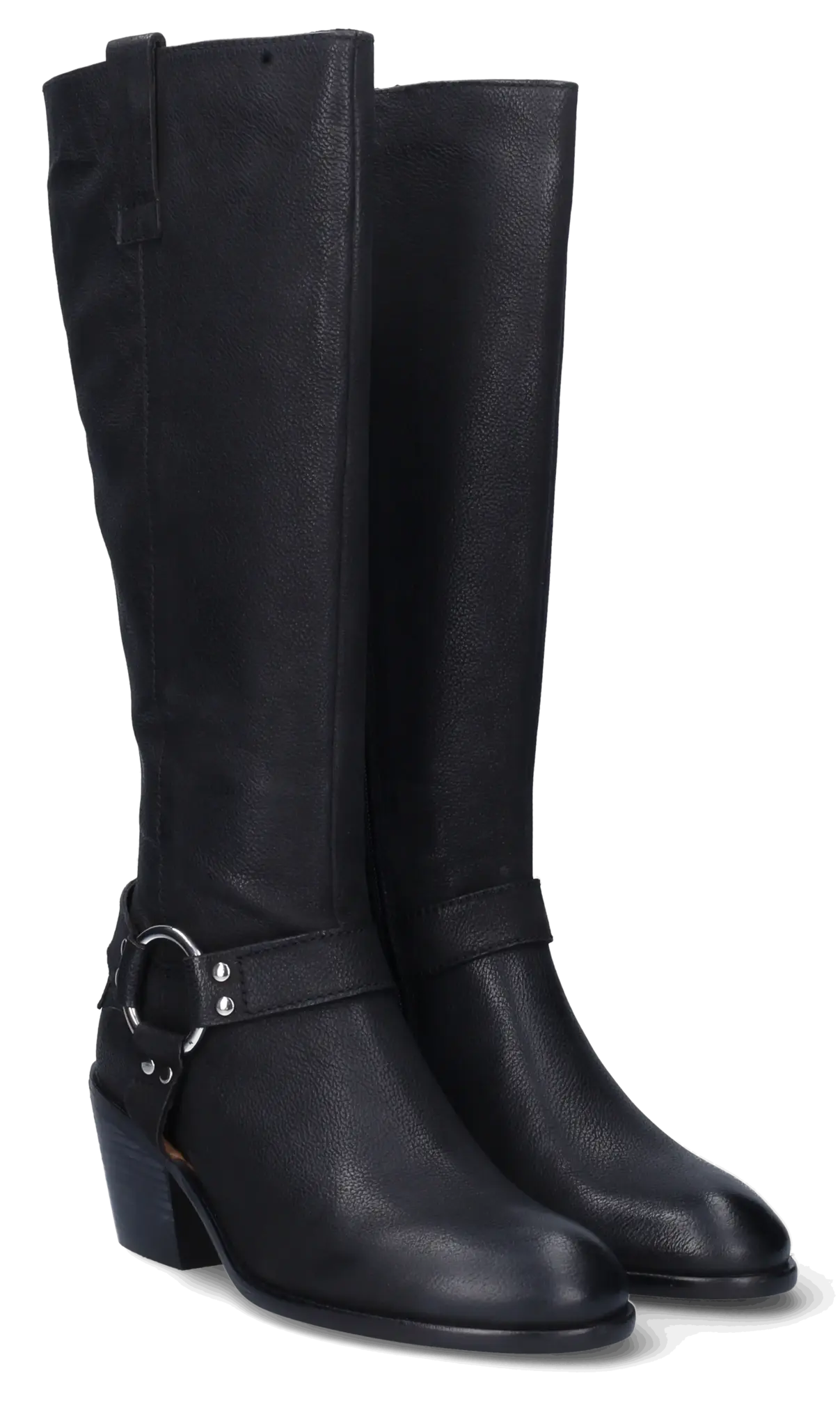 Crafted from high-quality black leather, Roydon features a tall shaft with an extra-wide fit, offering comfort and confidence for fuller calves. The Cuban-style block heel adds height and elegance without sacrificing stability, while elongating the leg for a flattering finish.