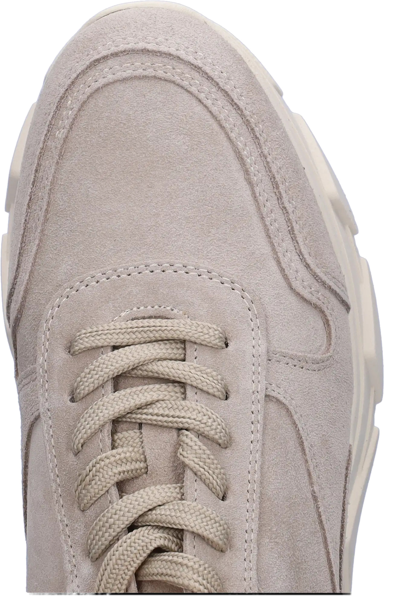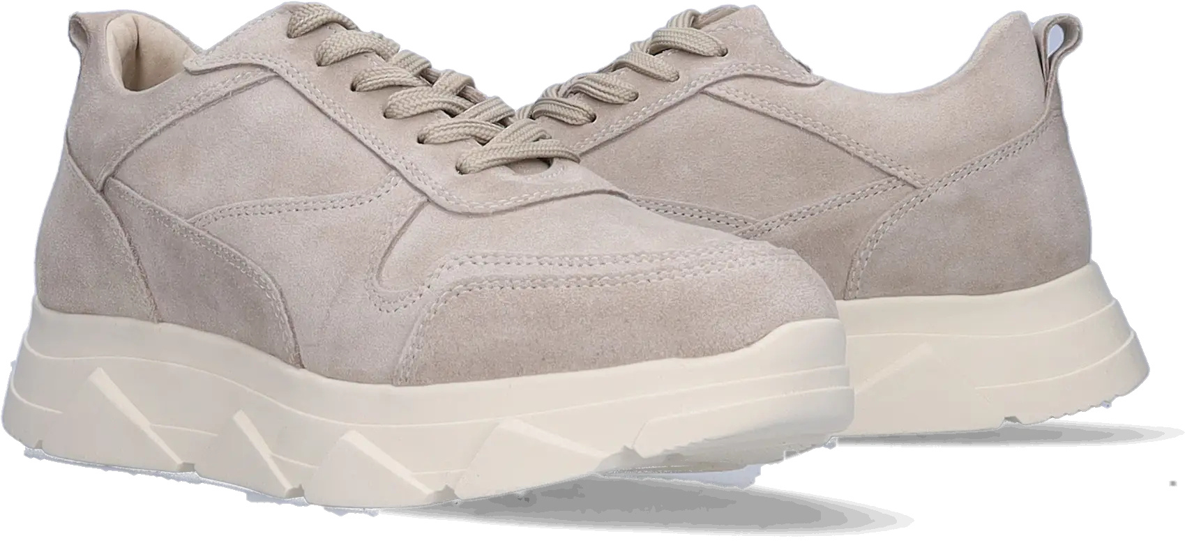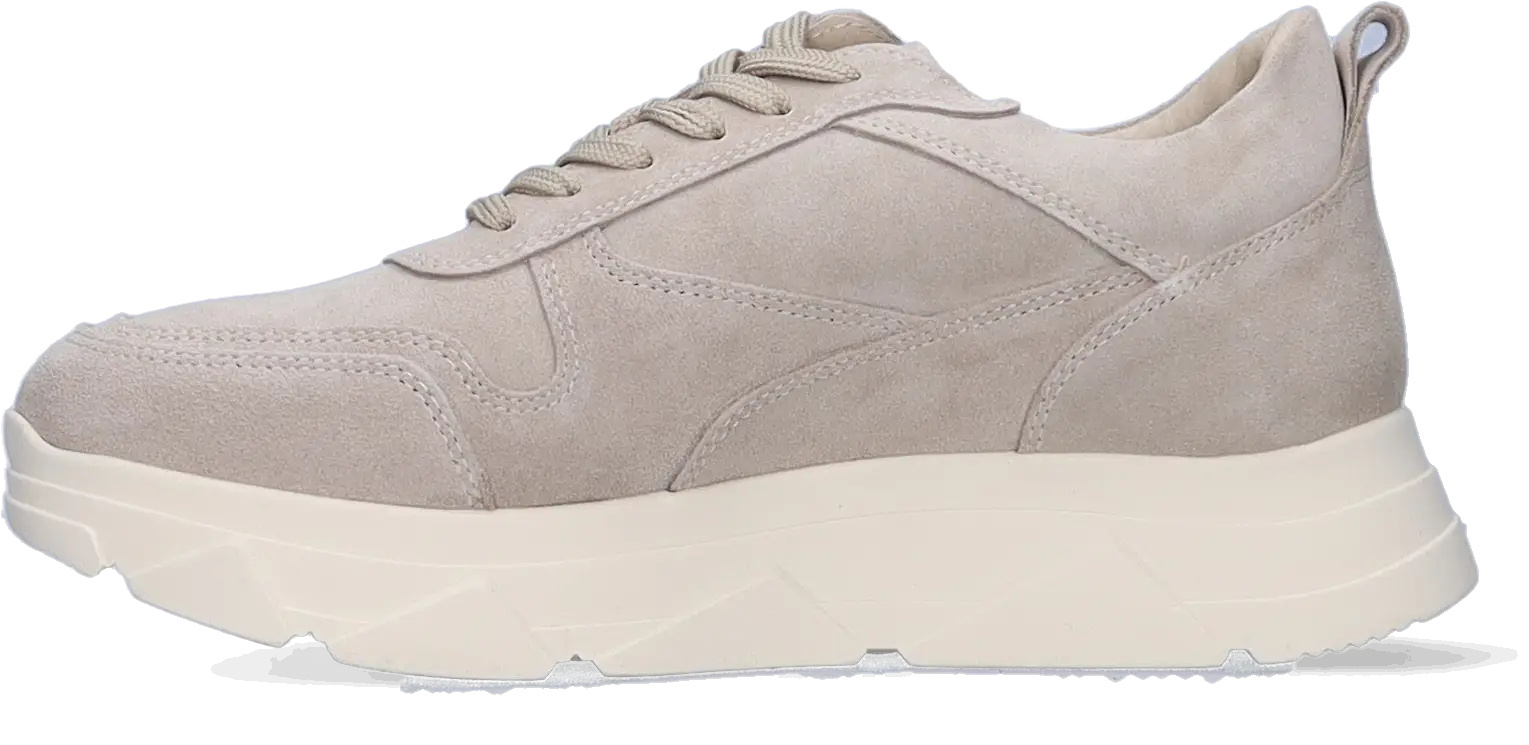 Tirana is a beige suede narrow width sneaker. Features a trendy chunky sole, lace fastening, low instep, and removable insoles. Available in various width sizes and color variations