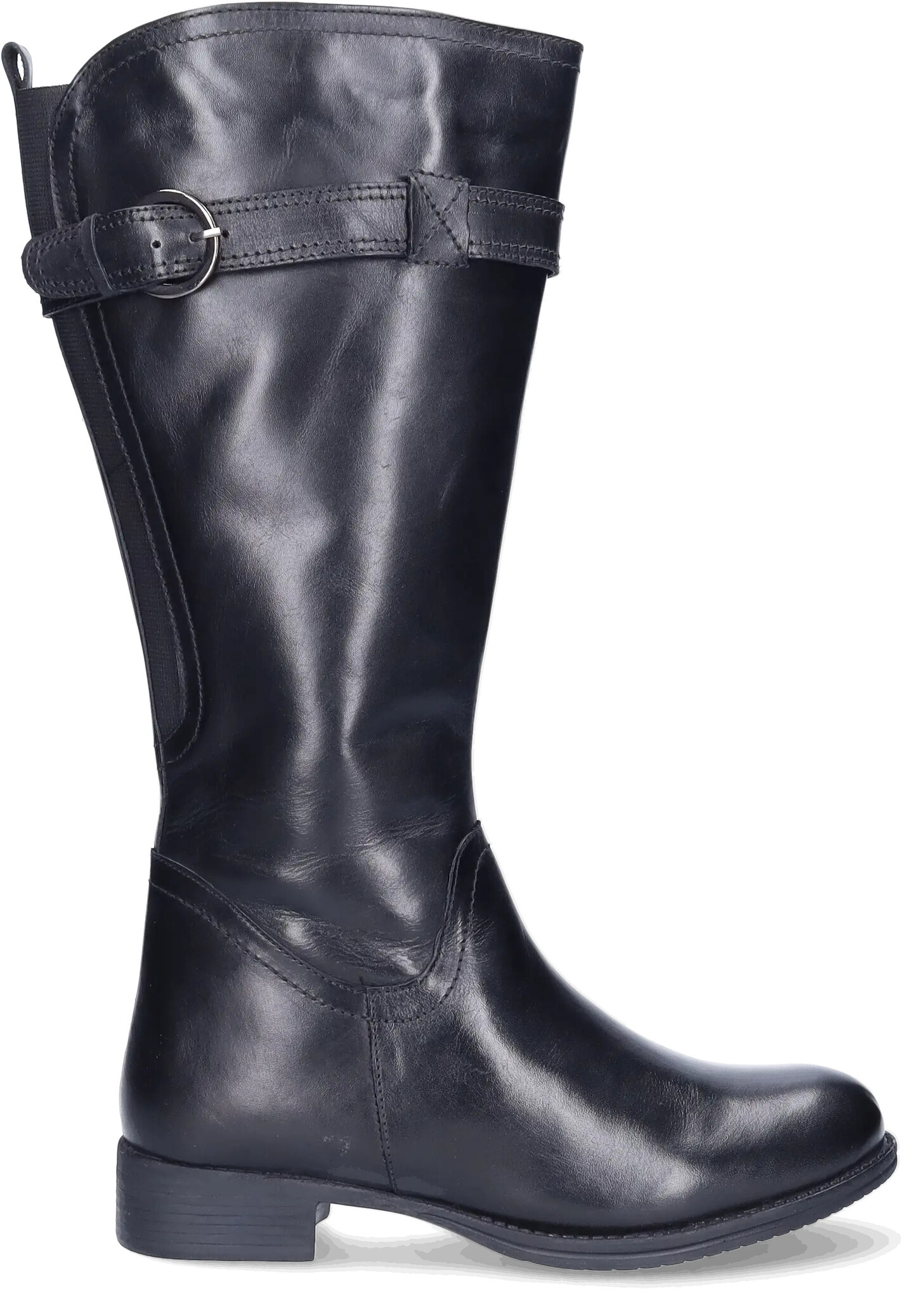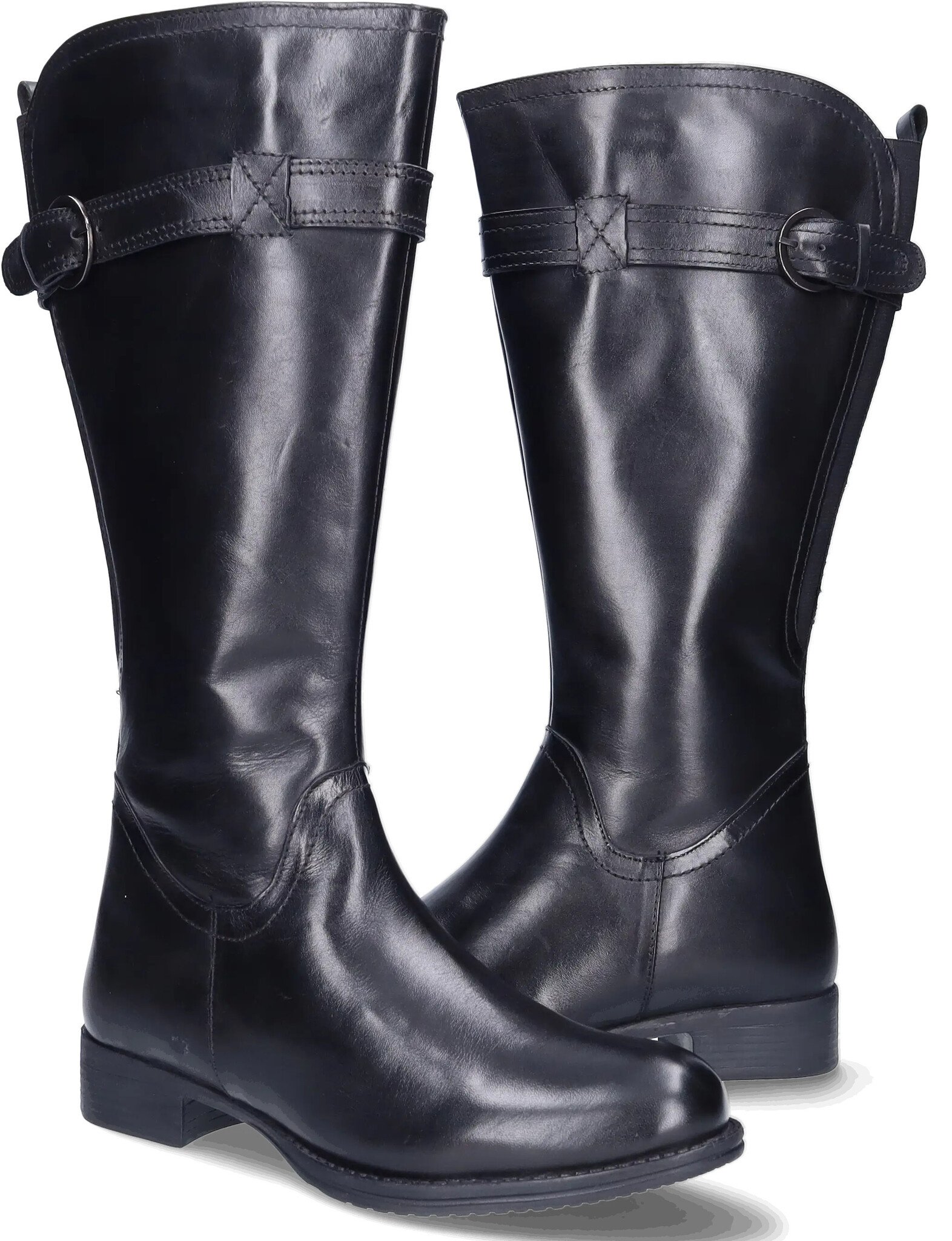 Victoria is a sleek black colored leather women's wide calf boot, available in a variety of calf fittings, including narrow and super plus wide and in sizes 5-13.